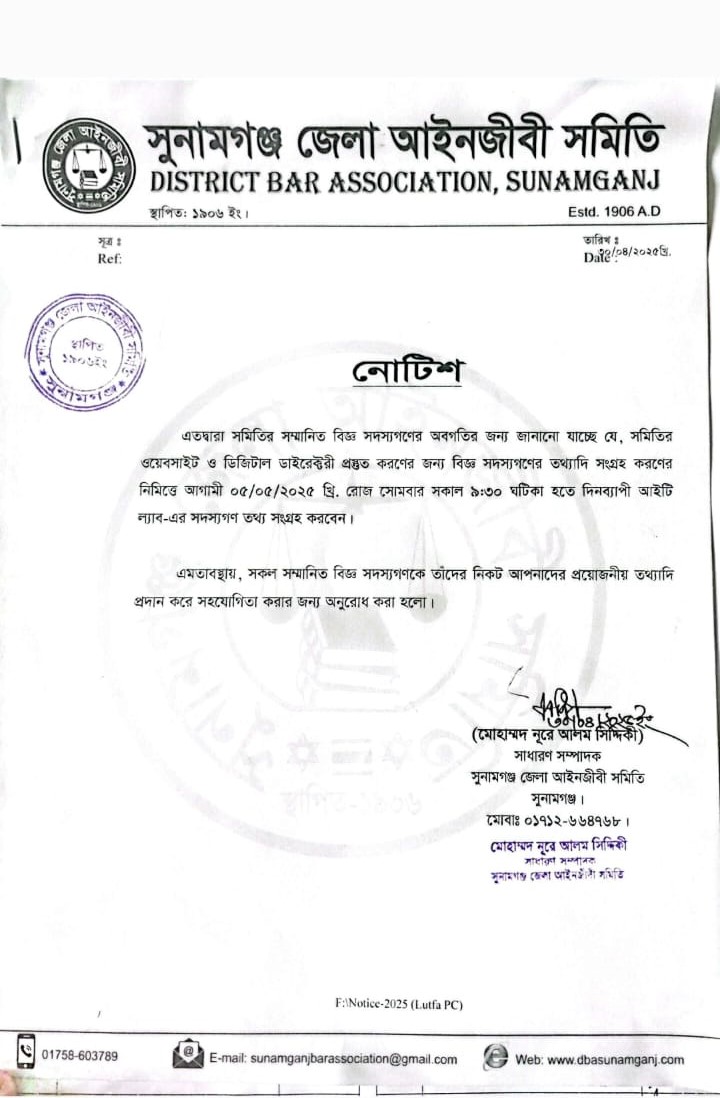 সমিতির সদস্যদের কাছ থেকে তথ্য সংগ্রহের বিজ্ঞপ্তি